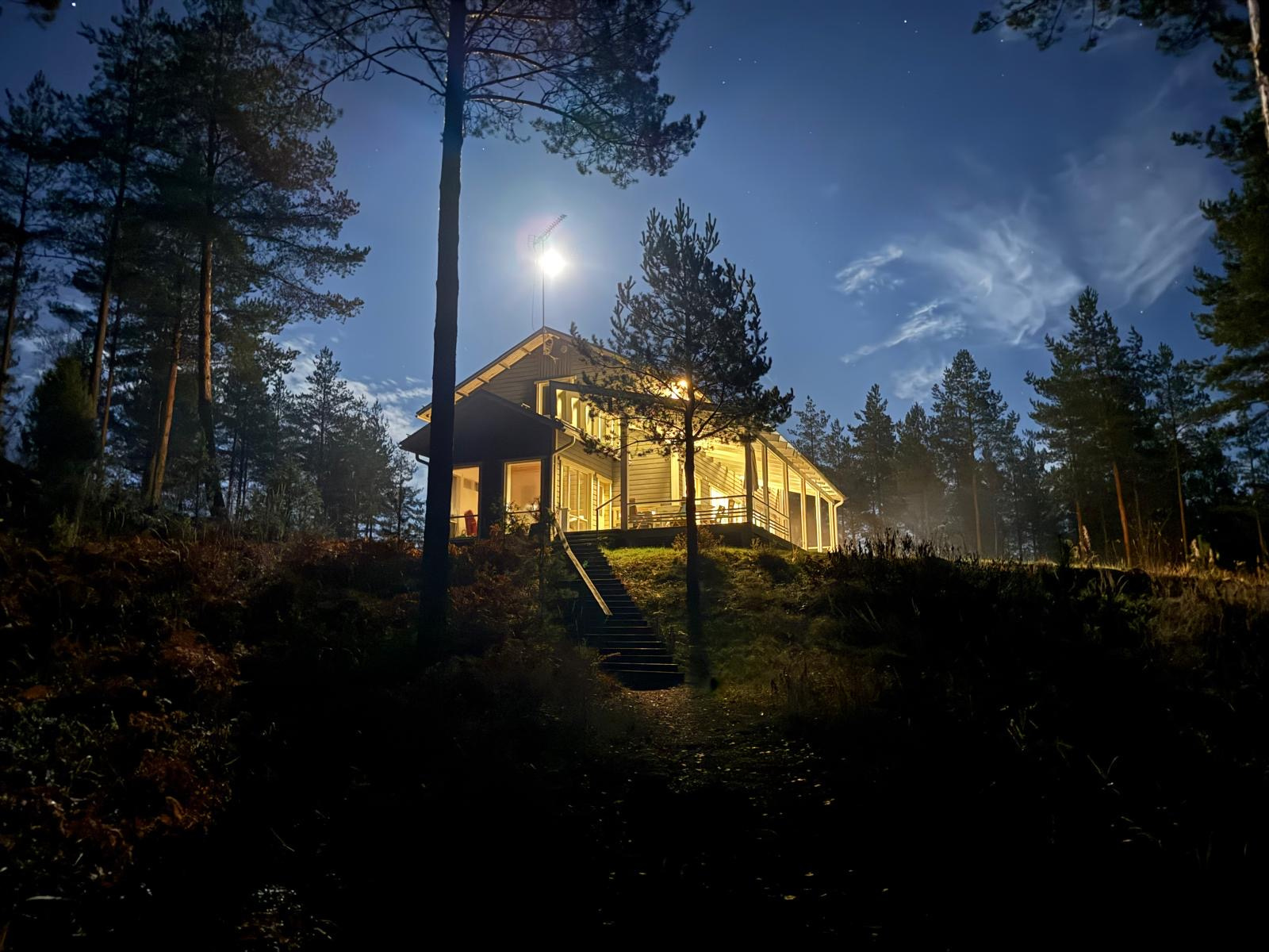 Tilava huvila sisältää avaran keittiö-olohuoneen, neljä makuuhuonetta, wc:n ja kylpyhuoneen, ja tarjoaa vuodepaikat 10 hengelle. Kesällä ilmastointi pitää tilat viileinä, kun taas talvella lattialämmitys takaa mukavuuden. Puulämmitteinen rantasauna ja oma hiekkaranta sijaitsevat vain 50 metrin päässä päärakennuksesta, tarjoten upeita hetkiä luonnon helmassa.
